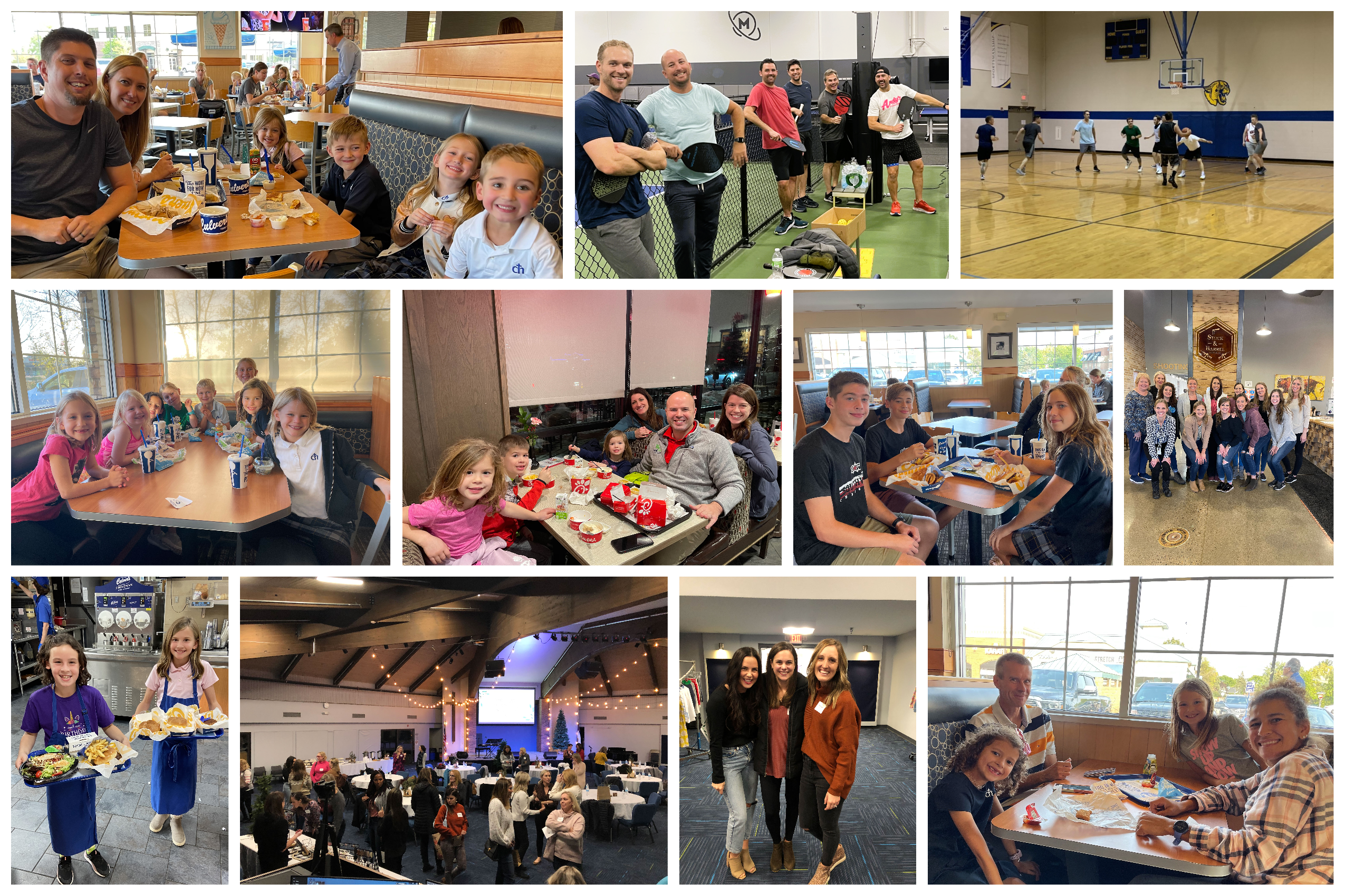 - Moms’ Nights Out (Stock & Barrel, Pickleball, Ladies Dessert, Social, & Shopping)